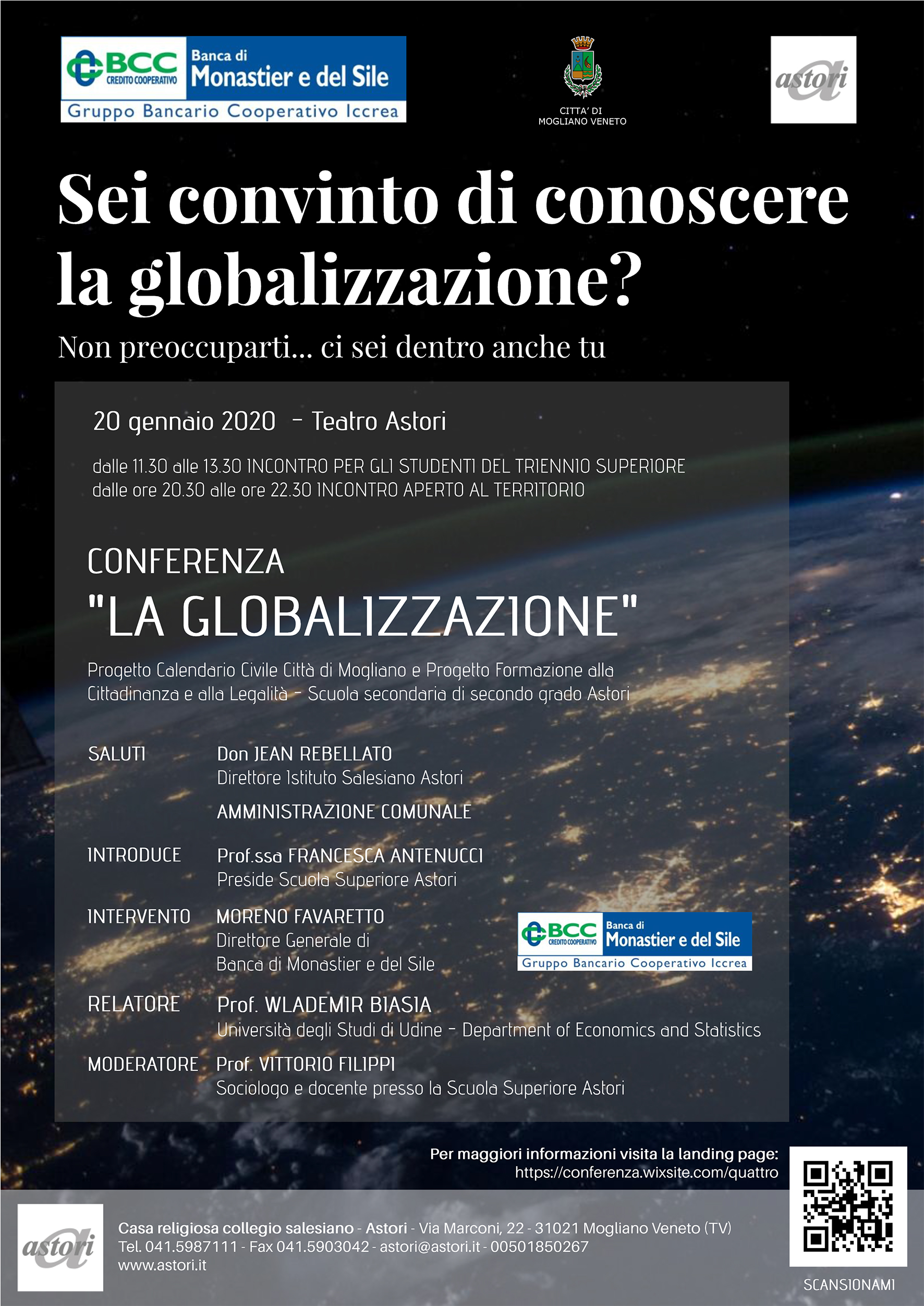 All'interno del progetto Formazione alla Cittadinanza, lunedì 20 gennaio dalle 11.20 - 13.00 si terrà la conferenza dal titolo “LA GLOBALIZZAZIONE” con relatore il prof. BIASIA, docente di Economia bancaria e finanziaria presso l’Università di Udine dedicata ai ragazzi del triennio superiore e agli studenti del Liceo Berto.