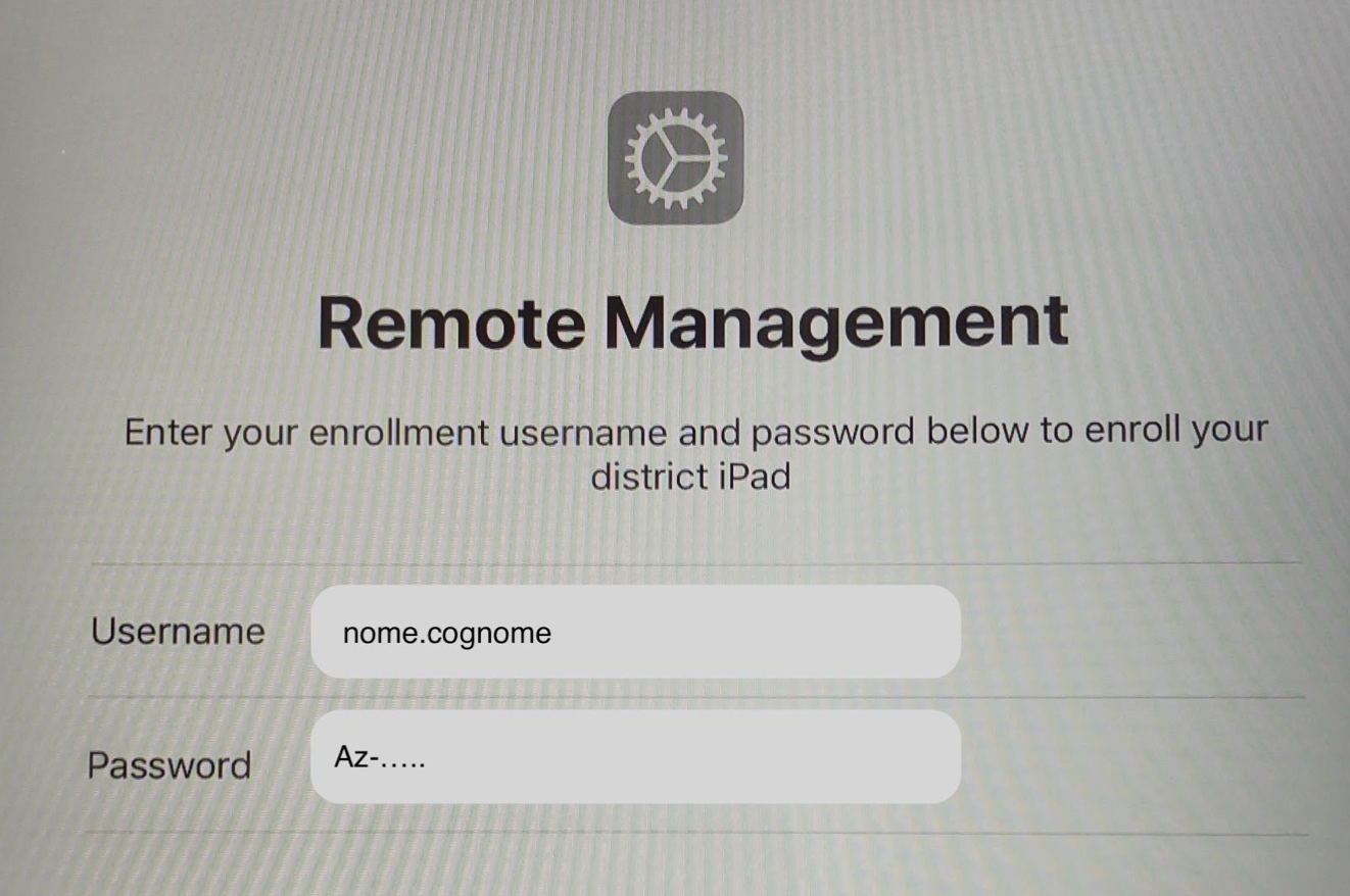 In questa sezione, inserisci le credenziali del tuo Apple ID gestito. Questo id ha il seguente formato: Questo indirizzo email è protetto dagli spambots. È necessario abilitare JavaScript per vederlo. (Attenzione: la prima parte dell’apple ID è formata da il tuo nome e cognome senza spazi. Se il tuo nome ad esempio è Mario Rossi il tuo Apple ID sarà: Questo indirizzo email è protetto dagli spambots. È necessario abilitare JavaScript per vederlo.)