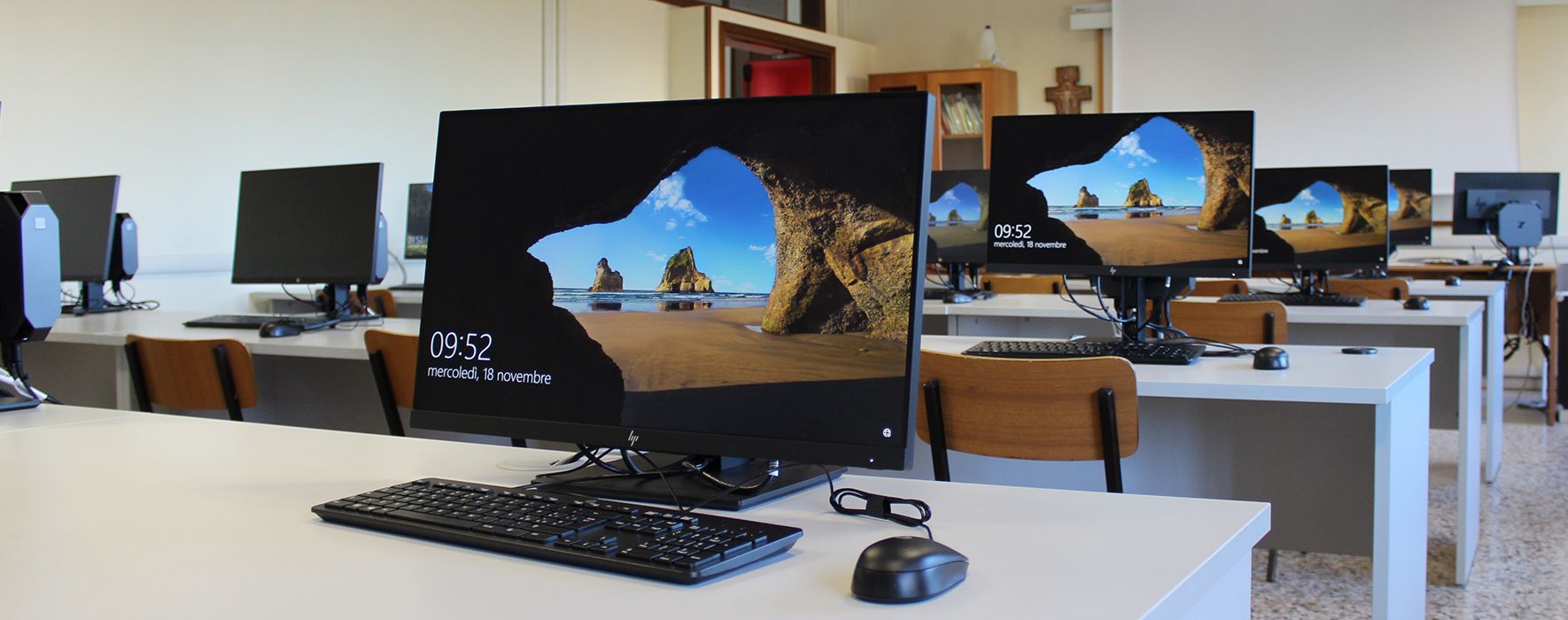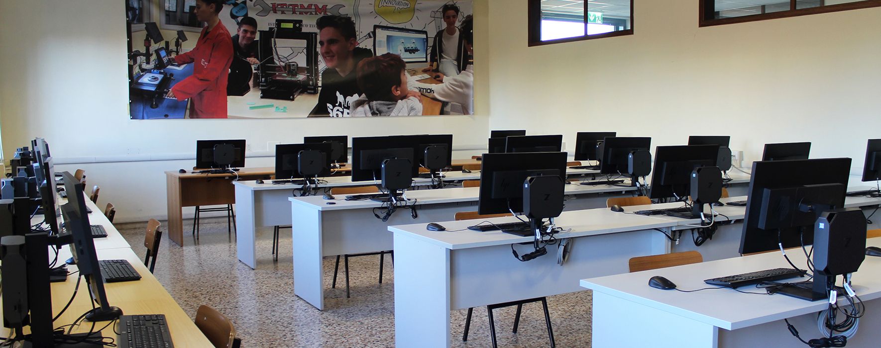 L’aula CAD è dotata di n. 25 postazioni con accesso ad internet e apple TV è presente, inoltre un video proiettore collegato alla postazione docente.